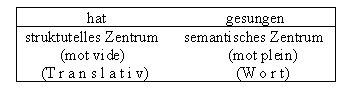 Der Herd glüht ® Der Herd ist glühend. Für die Translationsformel Relativpronomen ® Adjektiv das Beispiel: die Frau, die klug ist ® die klug-e Frau. Bei temporalen Translationen bleiben bei Tesnière die Stammbäume gleich, weil sich die Struktur des Satzes dadurch nicht ändert. So entspricht der Kern (Nukleus) /sing/ dem Kern /hat gesungen/. Dieser gliedert sich folgendermaßen: